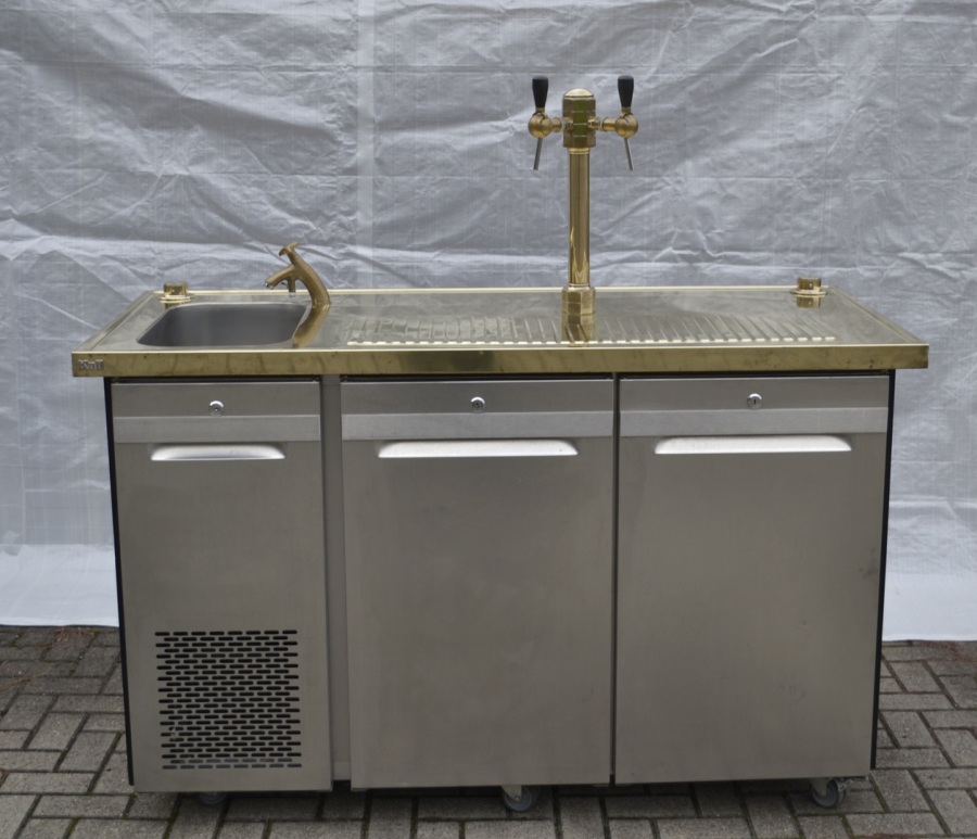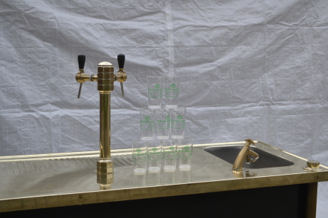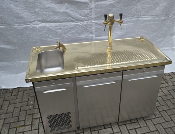 Sie biete eine 2-leitirige Zapfanlage sowie eine Abtropffläche unterhalb der Zapfhähne.