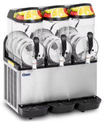 Mit drei separaten 12-Liter-Tanks können gleichzeitig verschiedene Sorten Slush-Eis, gekühlte Säfte oder sogar Frozen Cocktails und Longdrinks serviert werden